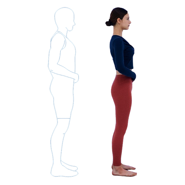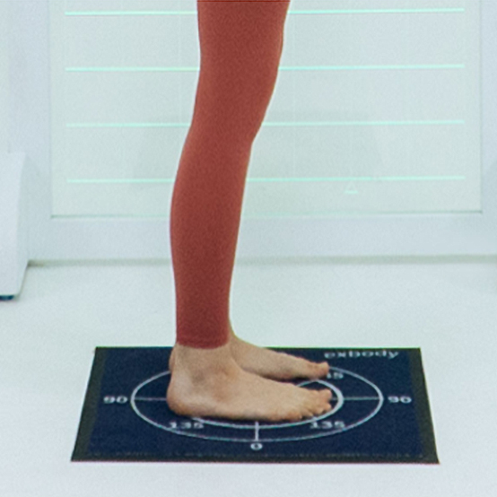 불필요한 골반회전을 방지하기 위해 발이 엇갈리지 않도록 발끝을 맞춘 상태로 측정을 진행합니다.