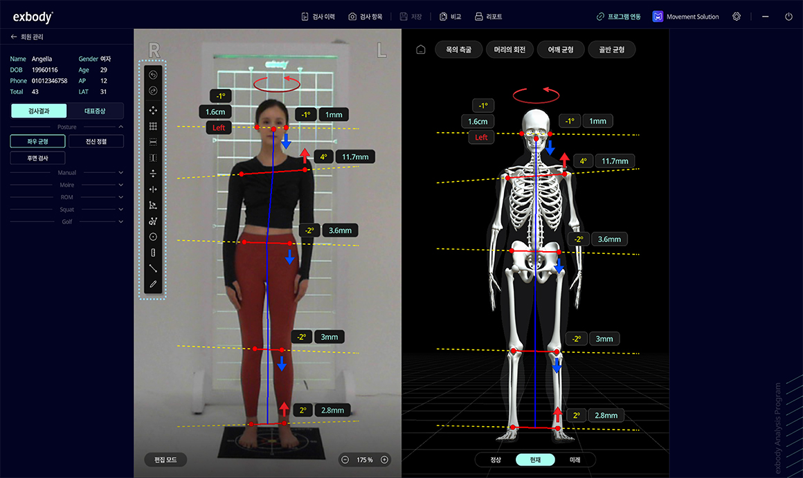 화면에서 왼쪽 [exbody Analysis] 아이콘을 클릭합니다.