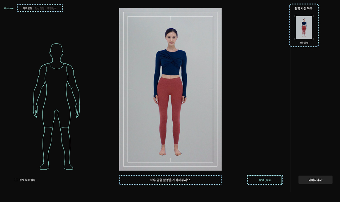 정중앙에 바르게 선 후 순서에 맞춰 촬영을 진행합니다.
