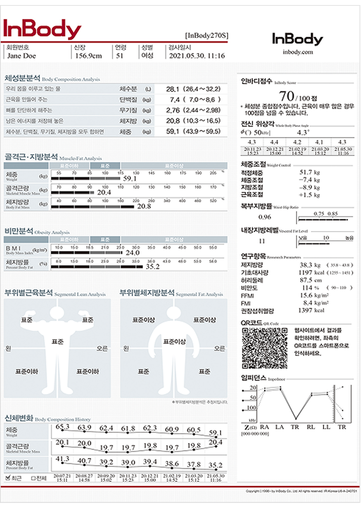 본 콘텐츠의 데이터는 ㈜인바디(모델명: 270s)의 데이터를 기초로 작성되었습니다.